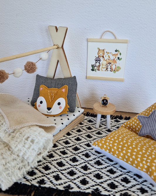 Puppenhaus-Kinderzimmer-Set im Maßstab 1:12, Cozy Fox, Miniaturmöbel-Set, Maileg-Mäuse (perfekt für Ikea-Puppenhäuser)